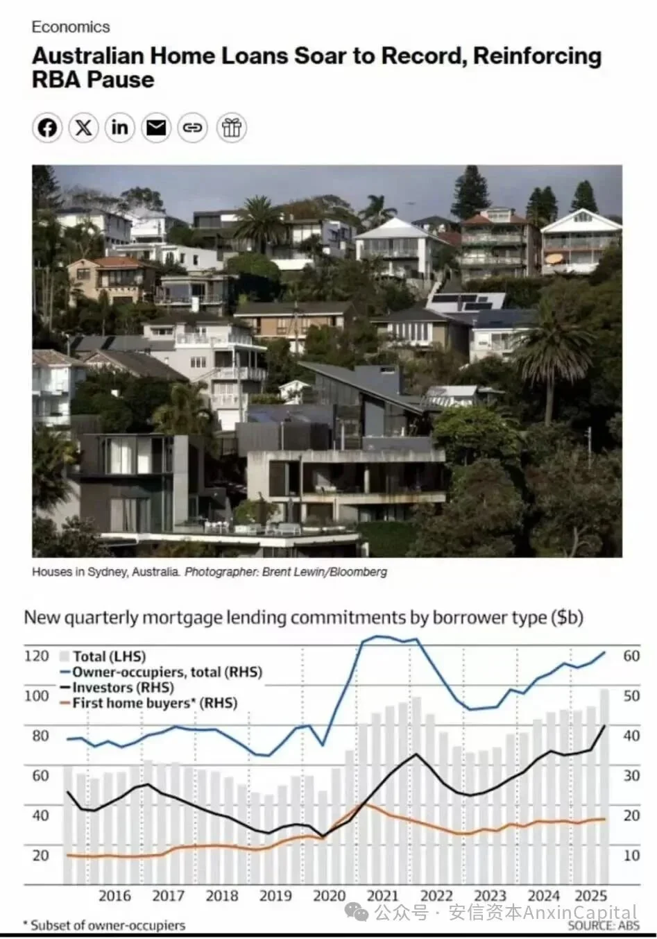 根據澳洲統計局(ABS)最新數據,2025年第三季新增投資房貸總額達398億澳元,佔全部新增房屋貸款的40%。值得注意的是: